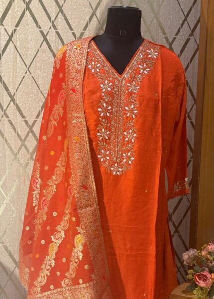 Dola Silk Party Wear Suit for Women – Orange Festive & Wedding Wear